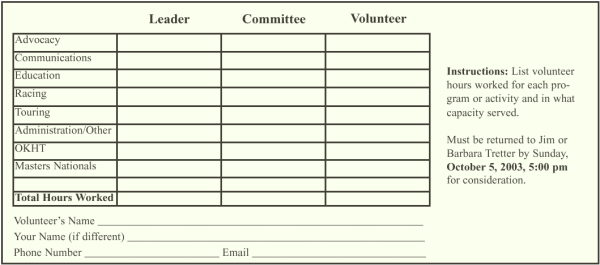 Please reserve Saturday evening, December 6, on your calendar for the Club’s Annual Awards Banquet. It will once again be held at the Knights of Columbus Hall on River Road. Following a cash bar and buffet dinner, the program will elect 2004 officers, acknowledge our 2003 achievements and recognize the volunteers who made it all happen. Look for registration and cost details in the November/December newsletter. During the Awards Banquet, LBC members and others who made significant contributions of their time and skills to our many programs will be awarded a Louisville Stoneware mug. In past years deserving members may have been overlooked when the list of volunteers was compiled. We’re trying to improve the process by asking members who feel they should receive a mug to self-nominate for the award. You can also nominate someone you think deserves one. Hopefully this will supplement the existing process and eliminate the disappointment of not receiving (or stupefaction at receiving) a mug. The guidelines and self-nomination instructions are below.